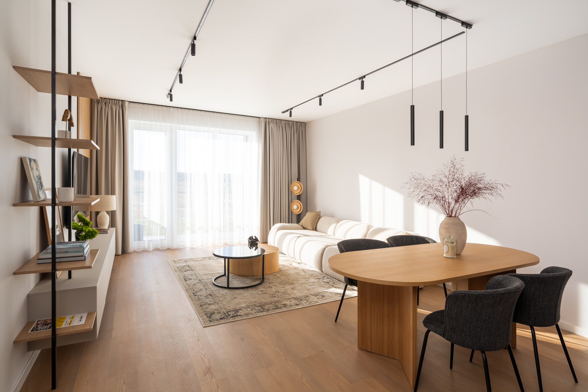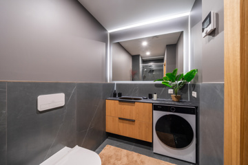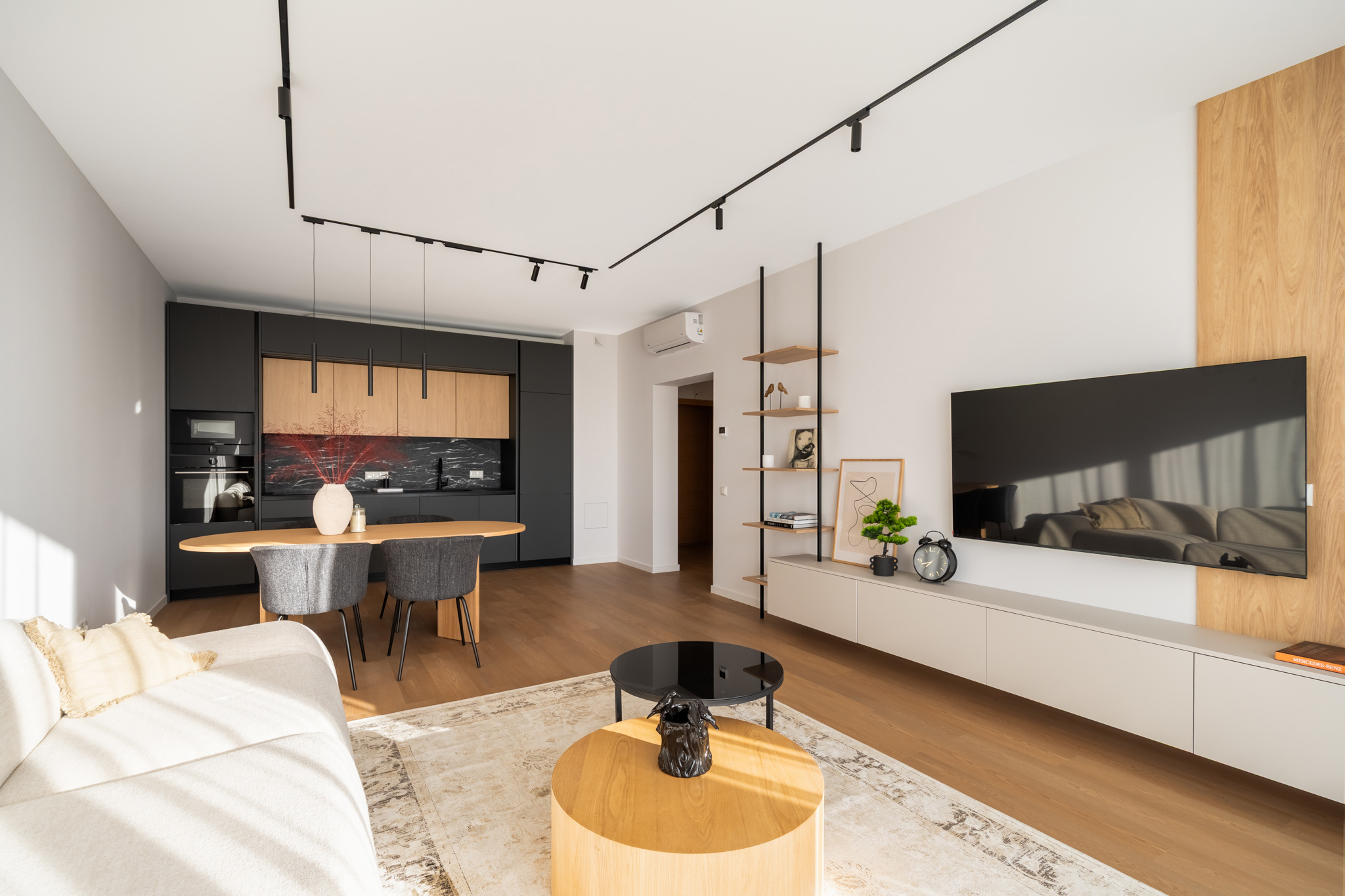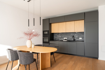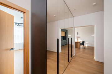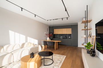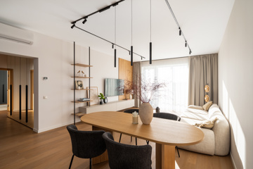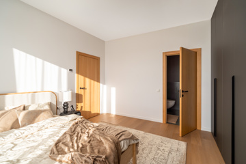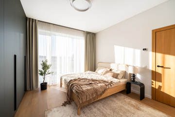 Mājīgs trīsistabu dzīvoklis ģimenei Dzīvokļi tiek piedāvāti ar pilnu iekšējo apdari, kvalitatīvām grīdām, flīzēm un santehniku. Dzīvokļos ir siltās grīdas visās telpās. Ēkai ir A+ energoefektivitāte, kondicionieri un rekuperācijas ventilācija. Pagalmā 45 autostāvvietas, ēkā noliktavas telpas Funkcionāls un pārdomāts trīsistabu dzīvoklis, kas lieliski piemērots ģimenes dzīvei. Dzīvoklī ir plaša viesistaba apvienota ar virtuvi, kas kļūs par galveno vietu kopā būšanai un ikdienas dzīvei. No viesistabas ir izeja uz lodžiju. Dzīvoklī ir divas atsevišķas guļamistabas, kas piemērotas vecāku un bērnu istabām. Vecāku guļamistaba ir savienota ar privātu vannasistabu un tai ir izeja uz balkonu. Papildus dzīvoklī ir vēl viena vannasistaba, kas nodrošina ērtu ikdienu ģimenei. Plānojumu papildina priekštelpa ar vietu iebūvētajiem skapjiem. Dzīvoklis ir gaišs un pārdomāti izplānots, nodrošinot komfortu un ērtu dzīvi. Norādītā cena ir bez mēbelēm un iebūvētās tehnikas. Ir iespēja vienoties arī par pilnībā aprīkotu, 100% mēbelētu dzīvokli.