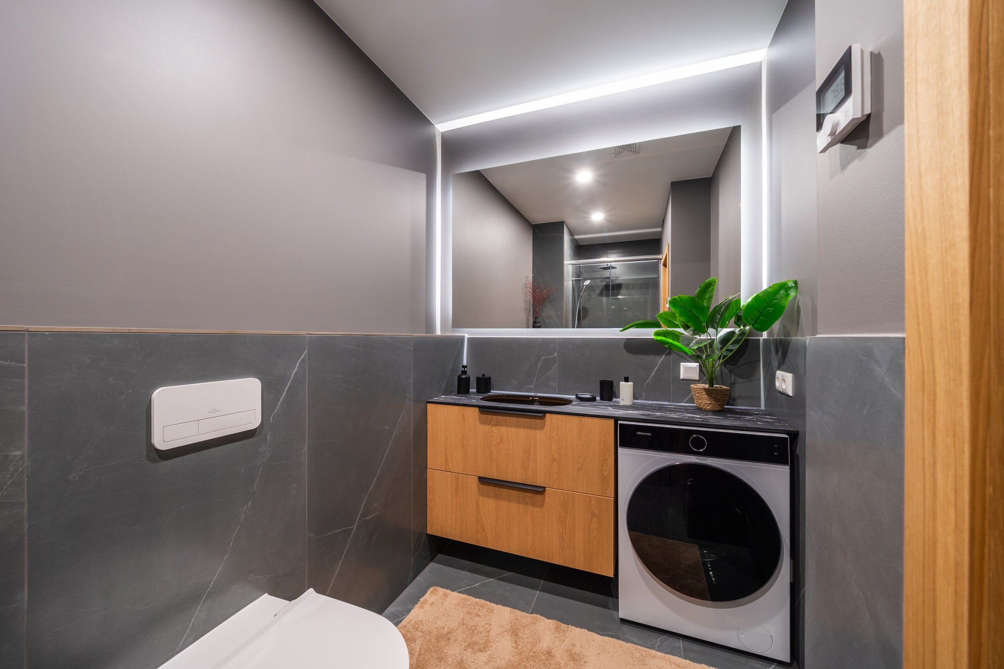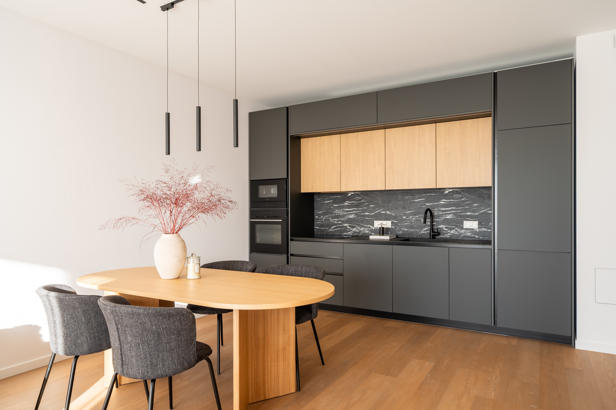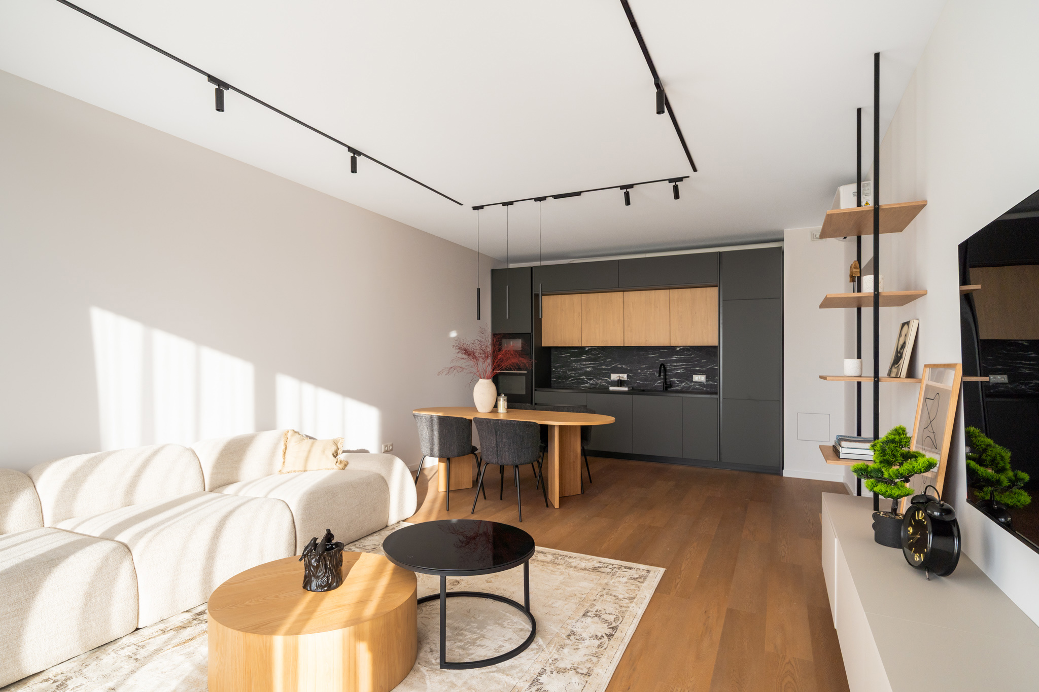 Mājīgs trīsistabu dzīvoklis ģimenei Dzīvokļi tiek piedāvāti ar pilnu iekšējo apdari, kvalitatīvām grīdām, flīzēm un santehniku. Dzīvokļos ir siltās grīdas visās telpās. Ēkai ir A+ energoefektivitāte, kondicionieri un rekuperācijas ventilācija. Pagalmā 45 autostāvvietas, ēkā noliktavas telpas Funkcionāls un pārdomāts trīsistabu dzīvoklis, kas lieliski piemērots ģimenes dzīvei. Dzīvoklī ir plaša viesistaba apvienota ar virtuvi, kas kļūs par galveno vietu kopā būšanai un ikdienas dzīvei. No viesistabas ir izeja uz lodžiju. Dzīvoklī ir divas atsevišķas guļamistabas, kas piemērotas vecāku un bērnu istabām. Vecāku guļamistaba ir savienota ar privātu vannasistabu un tai ir izeja uz balkonu. Papildus dzīvoklī ir vēl viena vannasistaba, kas nodrošina ērtu ikdienu ģimenei. Plānojumu papildina priekštelpa ar vietu iebūvētajiem skapjiem. Dzīvoklis ir gaišs un pārdomāti izplānots, nodrošinot komfortu un ērtu dzīvi. Norādītā cena ir bez mēbelēm un iebūvētās tehnikas. Ir iespēja vienoties arī par pilnībā aprīkotu, 100% mēbelētu dzīvokli.